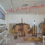 After watching the wind toy craned into position to a round of applause by the media, I entered the exhibition El Taller de los Sueños to be transported into the more private world of Manrique and a reproduction of his studio at home in Haría. There are personal artefacts of paint brushes, shoes, glasses, diaries and notebooks belonging to the artist, the video we featured relating to the BMW 730i series car he painted is playing along with a display of photos relating to the artist over the decades.