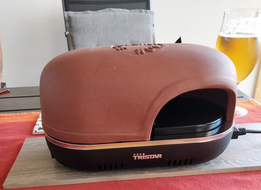 This I did only after oiling my ´pizza paddle´ so that it would be ready to lift and drop my creation into my own personal oven. We each had one of these mini pizza ovens in front of us. Once it had been in the oven for about 15 minutes I had to lift it out, drop the pizza onto my chopping board and replace the paddle onto a coaster to preserve the beautiful table.