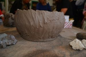 To make a ceramic bowl, the base is created by shaping the lump of clay into a circle with a lip around the edge, next a churro is created which is a baton of clay and used to form the sides of the bowl until the desired depth is reached. At this point when we were admiring his creation, Aquilino ripped the sides of the bowl apart exclaiming “no está roto”, it’s not broken, unlike when using a potters wheel with clay, this mixture is very workable and in a moment the sides were repaired.
