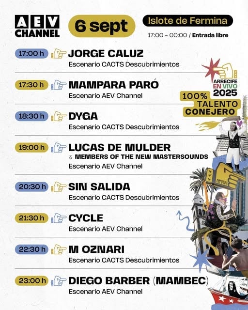 There’s a real international flavour to the acts and the variety of music is huge. You can check each band and even listen to a sample of their music here: https://www.arrecifeenvivo.com/artistas-2025/