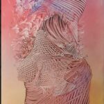 A: I see it as painting “braids”. I crochet my works the way our grandmothers made us sweaters, hats and scarves for the winter or our grandfathers weaved wicker baskets. The technique effects remind me of that traditional activities and I feel some form of connections with my ancestors. I braid these emotions and fleeting everyday sensations into my images.