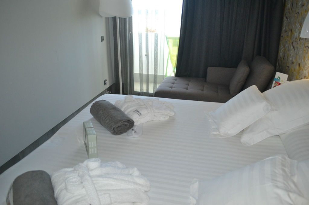 There are basically three room types – deluxe, deluxe with private hot tub and junior suite. All are available with or without sea view. The deluxe rooms are fabulous, but the junior suites add an additional lounge area with sofa and armchairs, a hydromassage bathtub and slippers and dressing gowns. We’d go for a deluxe room with hot tub and sea view – we can just imagine sitting in the hot tub on the balcony, with a glass of cava and looking at the ocean!