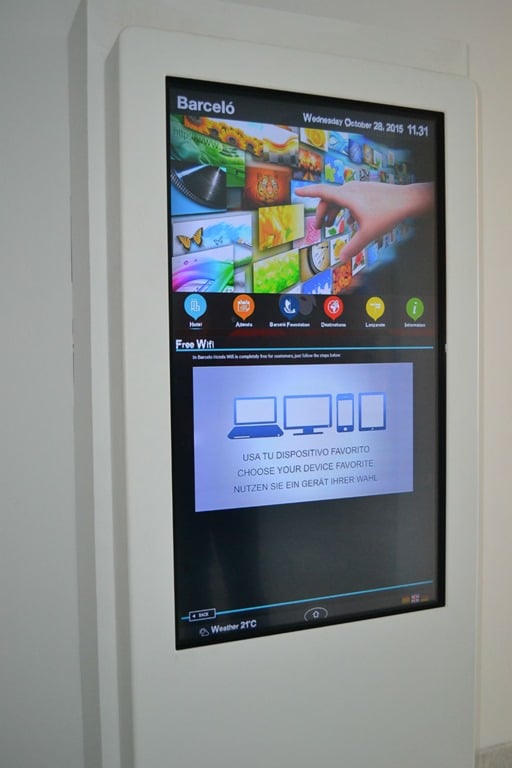 Technology plays an important part in the hotel – there is wifi, of course, but in reception there is a huge touchscreen computer with local information, as well as tablets anyone can use. And all the rooms have 43 inch flat screen TVs, coffee makers and “rain dance” showers.