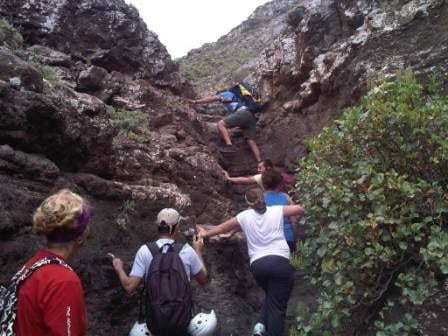 We met Nacho who gave us each a harness and hard hat to carry and we set off up the track towards the Risco de Famara. At the signpost for Morro Alto we turned off the track to walk up the hill. Nacho has an enthusiastic passion for the island which is one of the reasons that you need to have an understanding of Spanish to go on one of his activities, during each trip he explains the flora, wildlife and history of the surroundings.