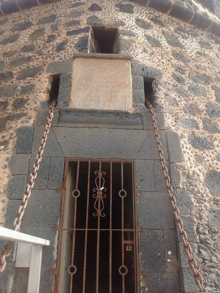 “During the Kingdom of D. Carlos III and under the command of Sir Miguel López Fernández de Heredia Marsical de Campo, this tower was rebuilt in San Marcial, Pto. de Las Coloradas, Punta del Águila in the year 1769”.