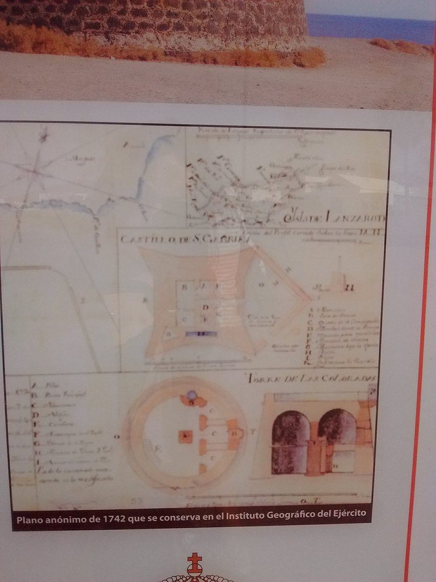 During the 18th century the Castle in Playa Blanca was guarded by the Castillians: D. José Feo, D. Juan García del Castillo, D. Pedro Martín Barbosa y D. Marcial Jové Medina and Condestables, D. José martín Barbosa and D. Marcial Trujillo. This castle plan, arisen by militar engineers in 1742, has been preserved by the Militar Geographical Institue. In its whole it is similar to the Tower plans of Caleta de Fuste y El Tostón in Fuerteventura and Gando Tower in Gran Canaria. It should have been the stereotyped design by the militar engineers of the time.