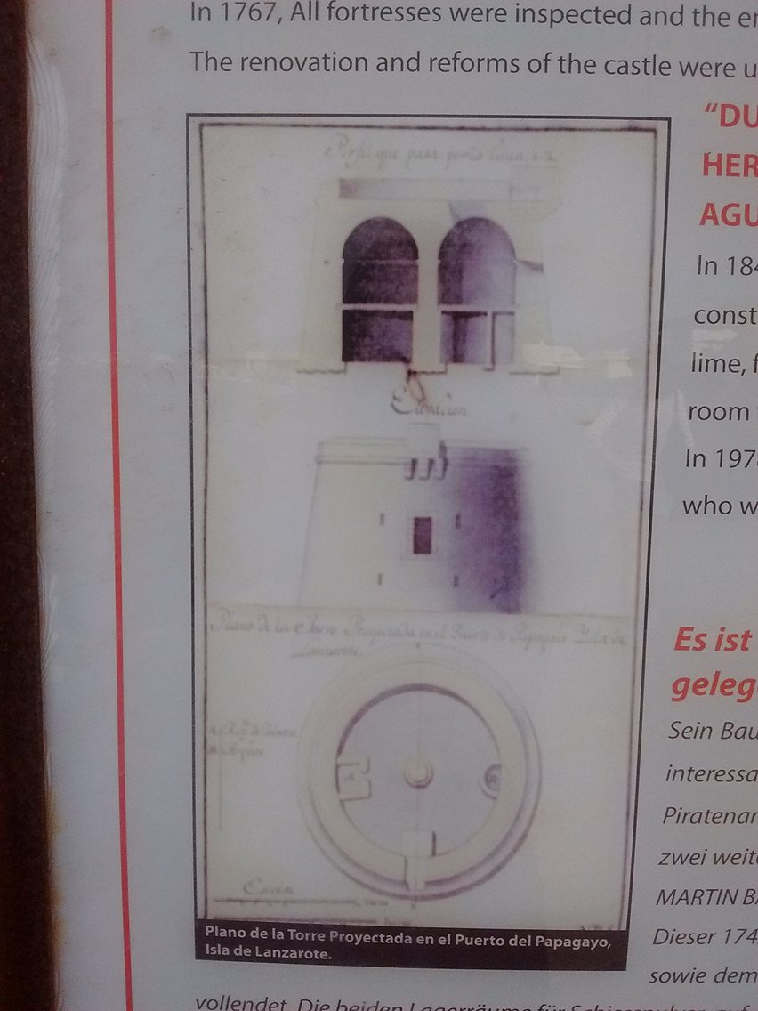 There is a sign giving some information about the castle in Playa Blanca in Spanish, English and German illustrated with reproductions of some of the Castle plans.