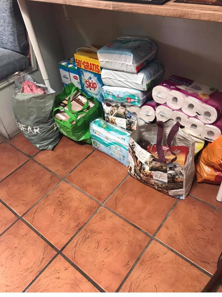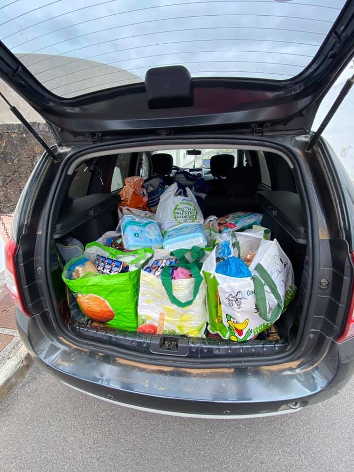 Any cash donations received are all logged and receipted, and then spent on buying fresh fruit, vegetables, baby milk, meat and cheese, tinned veg and pulses and toiletries and sanitary products. Food donations are dropped off at different locations in Costa Teguise for “la unión” to pick up. They then prepare the bags of food for each family that get delivered directly to their homes.