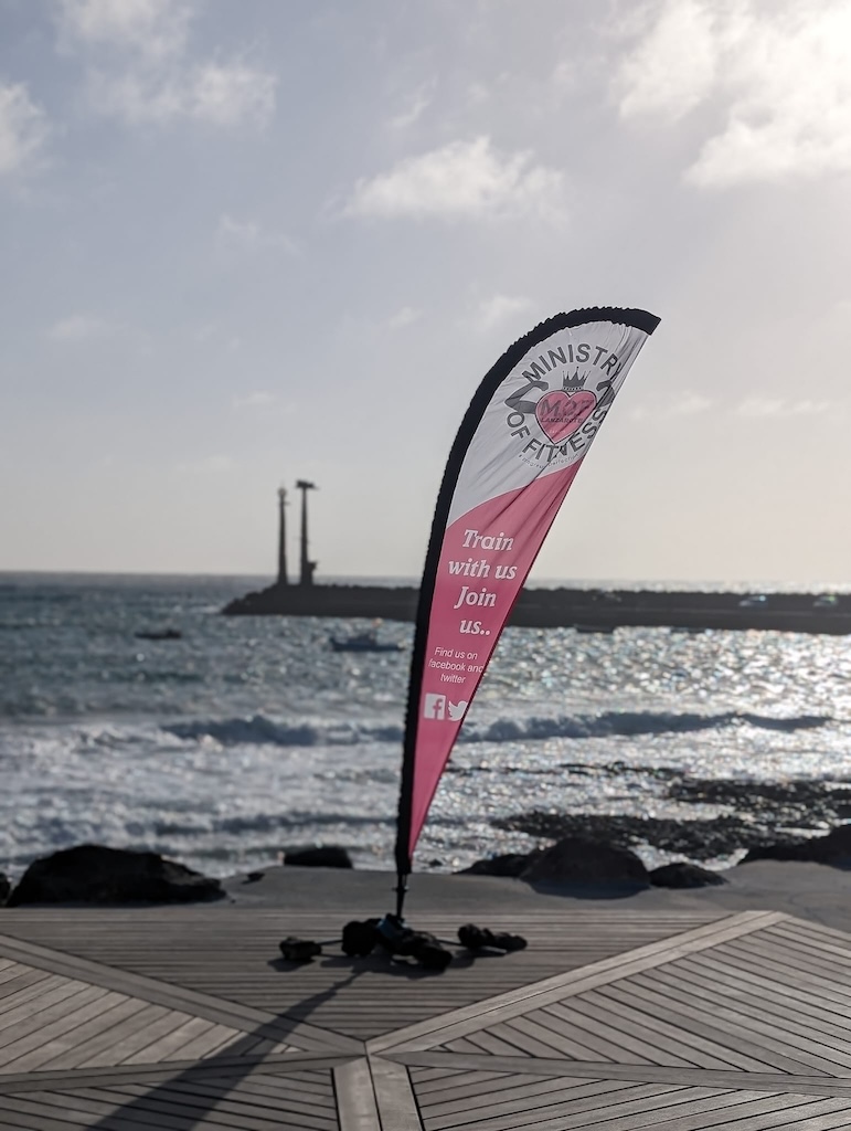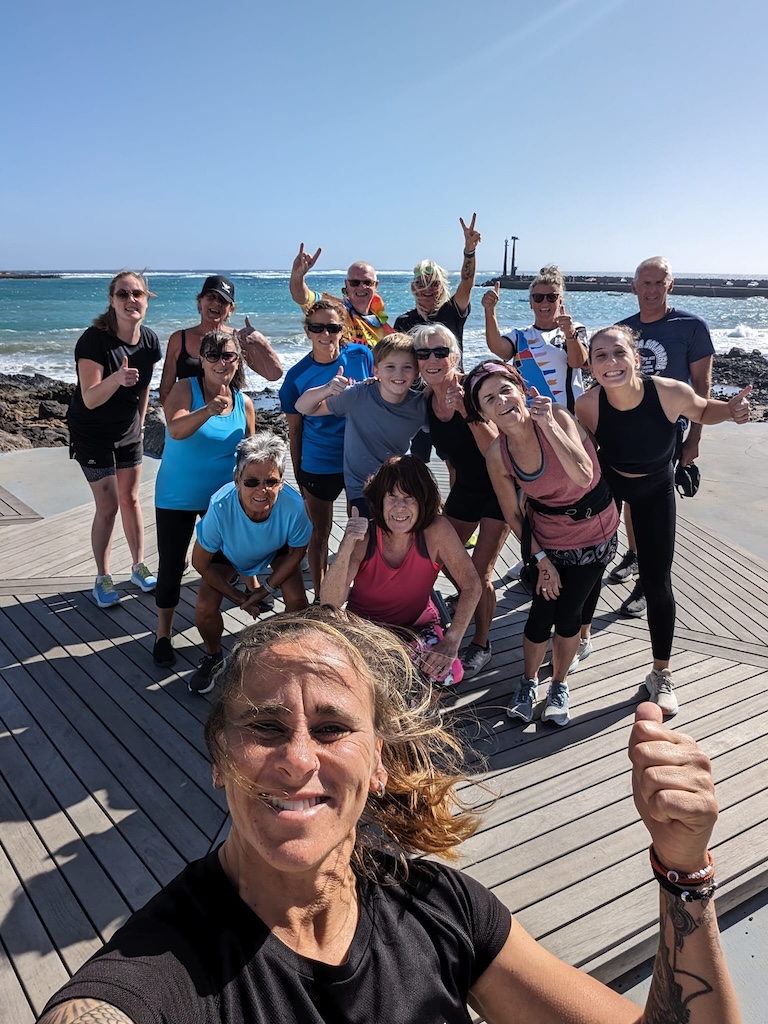 So, in 1997 she arrived in Lanzarote as a young girl, working in a local bar and one summer quickly turned into many more. Once again, she found herself turning to sport to keep herself active and took up trail running, playing Padel tennis and ultimately football again. Unfortunately, that’s where things took a turn for her as she got a nasty injury in a match and ruptured her cruciate ligament and damaged her cartilage. Many months of rehabilitation and after having ligament reconstruction she decided she would not be able to compete in football again and would focus more on strength/interval training to be as strong as she could be. This led her to become a group fitness coach and starting the Ministry of Fitness where they started with just one bootcamp a week. Fastforward to today and she now teaches step, weight lifting, HITT and mobility and organise a weekly 5km Park Run style event every Saturday.