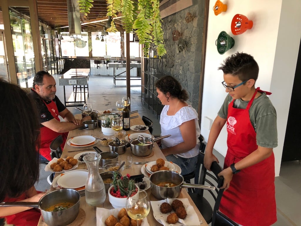 At Cook in Lanzarote, you’re assigned your own work station and cooking rings, with all the pots, pans and implements you need, and all the ingredients are pre-prepared for you. There’s no chopping to do! And as you use everything, it’s cleared away for you – you feel like a professional chef with a team working in the background.