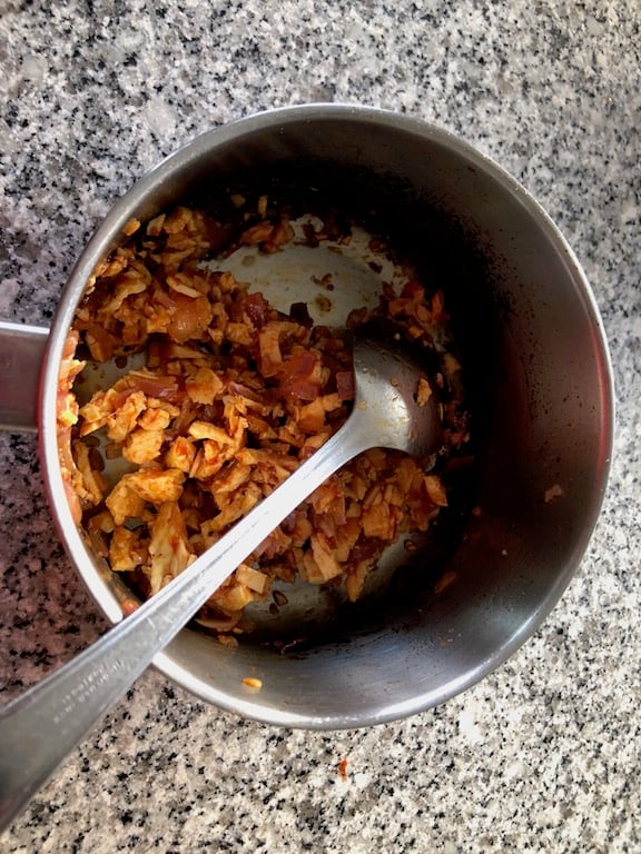 In between various dishes, João showed us how to cook a couple of quick and easy Brazilian snacks. First we took some goat’s cheese, very similar to Haloumi, and dry fried chunks until they were brown. Apparently, in Brazil, guys with mini barbecues strapped onto their bodies sell chunks of cheese like this on the beaches.