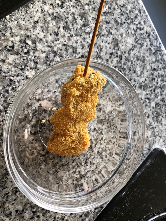 We also took some skewered prawns and dredged them in a type of palm seed before deep frying them. Similar to sesame seeds, but with a unique flavour, the crunchy prawns are another dish I’ll be reproducing at home.