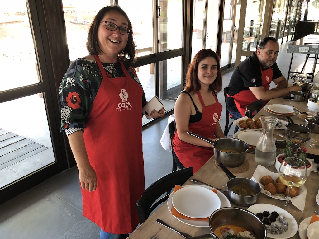 The event took place at Cook In Lanzarote‘s fabulous premises in Uga, and was attended by a local television crew. When we arrived we were greeted by Antonio, one of the owners of Cook in Lanzarote, and issued with our smart red aprons.