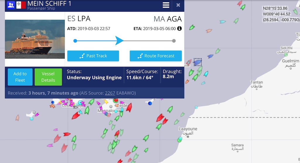 It’s a great way to identify the shipping we all see around the coasts here on a daily basis, and can also give you a heads up when another cruise ship is heading into port.