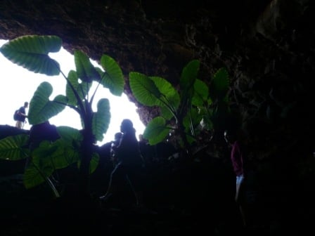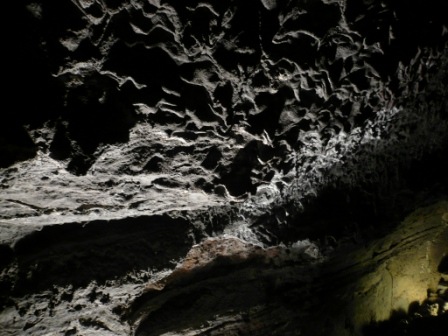 Our guide was speaking in both English and Spanish, he explained that we were standing in a volcanic tube which was formed when lava flowed from Mount Corona to the sea, this lava tube is over 6km long and up to 50m high and 15m wide in places. We learned that a lava tube is left when the top of the lava flow cools and forms a crust but the current continues underneath. There are some interesting names for sections of the tube such as Pie del Guanche (Guanche’s Foot), Cabeza del Monstruo (The Monster’s Head) , La Cripta (The Crypt) and Horno del Diablo (The Devil’s Furnace).