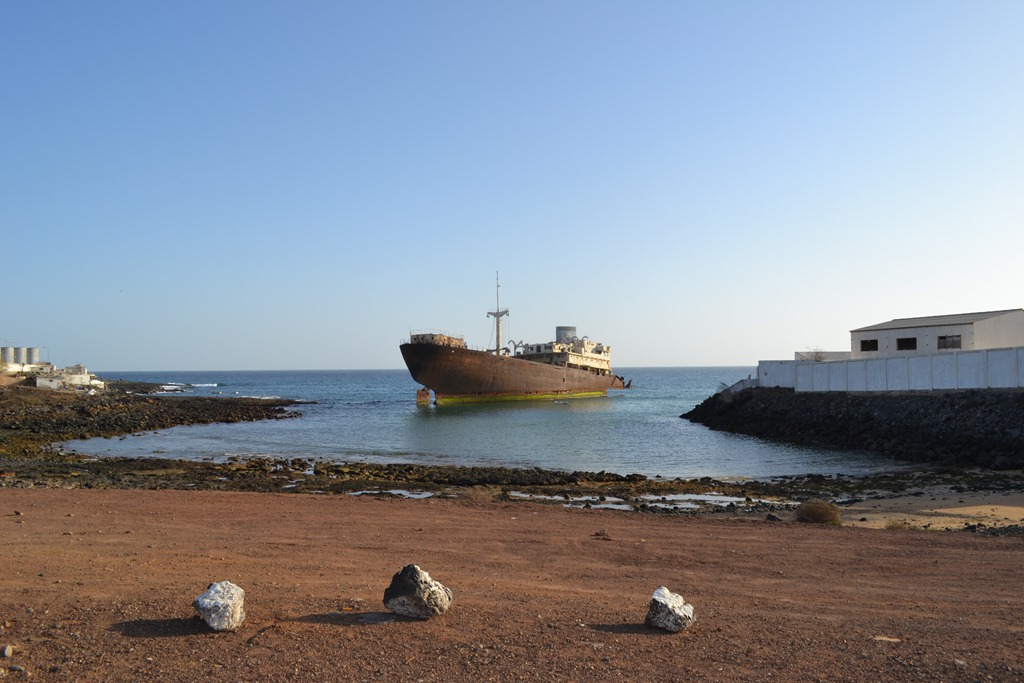 At the Fobos roundabout we’d covered 32km and decided to cut straight across towards the resort of Costa Teguise, there is a climb up before dropping down past the golf course and aquapark. We turned right and cycled down the dual carriageway towards Arrecife, looping around the roundabout to connect with the coast road to pass by the desalination plant and Telamon shipwreck. Turning left at the junction off the circunvalación towards Ikea and left again to follow the coast road past the Castillo San José & MIAC, a bit of caution is needed at the bottom of this road with potholes, before returning to the car park.