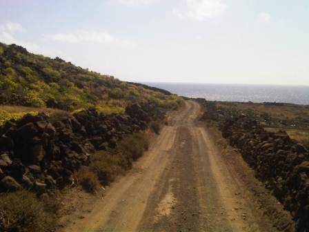 As the road drops down past the quarry, take the dirt track road to the left which passes through the terraced fields leading down to the coast.