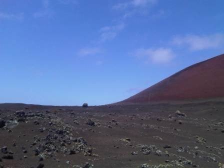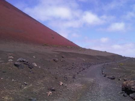 Montaña Colorada is the bright red mountain that you can see from the LZ-30 road which passes through La Geria. To access the parking area, turn onto the LZ-56 towards Tinguaton and the Timanfaya National Park, look for the dirt track turn off on your right as you approach the base of the corona.