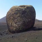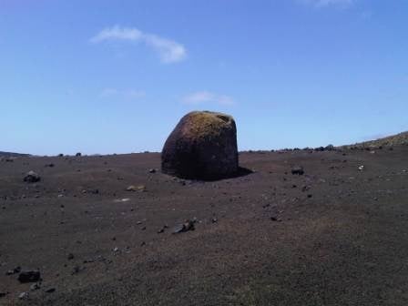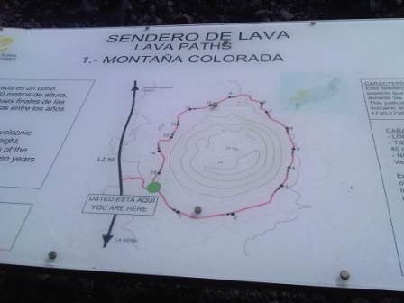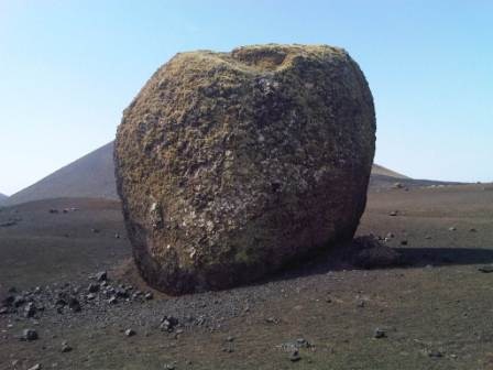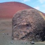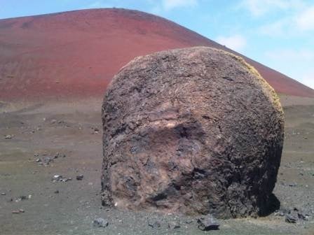 There is an official walk here which is one of the Sendero de Lava (lava paths), the Montaña Colorada walk is 4km long, a circular route around the base of the volcano with 15 different information points. Montaña Colorado was formed in the later stages of the 1730 t0 1736 eruptions and the volcano is 100m high. We followed the path around to the right in the direction indicated, it’s less than a 10 minute walk to the phenomenon called La Bomba. Pyroclasts are rocks that are formed from the molten lava and shot up out of the erupting volcano like volcanic bombs.