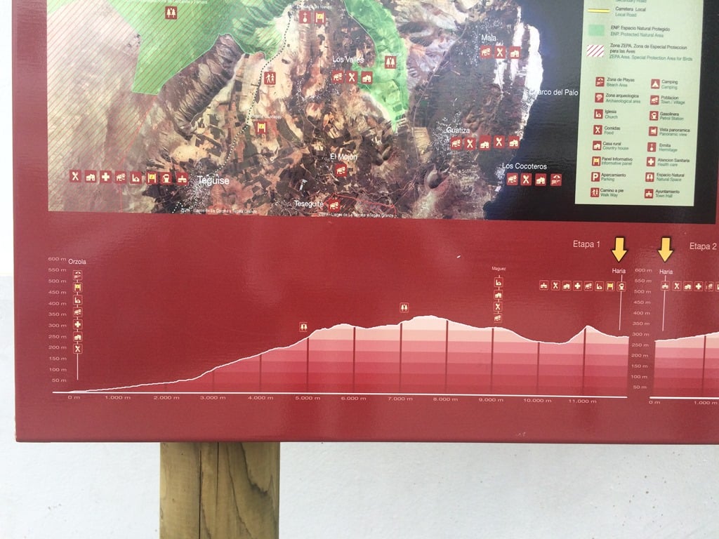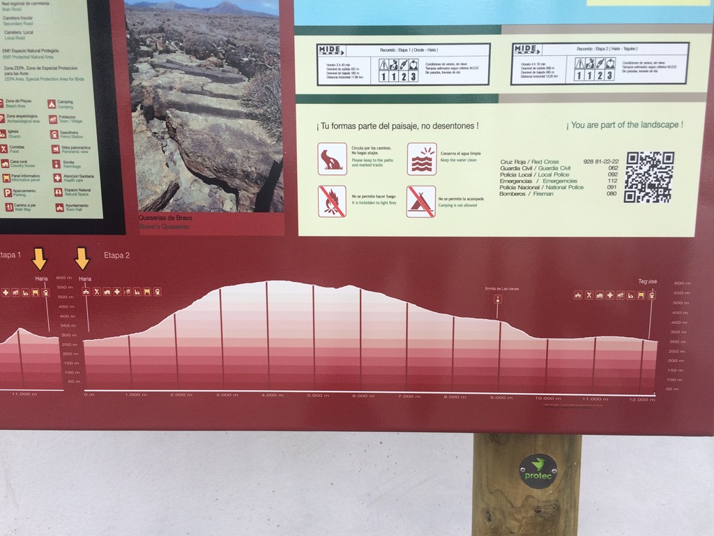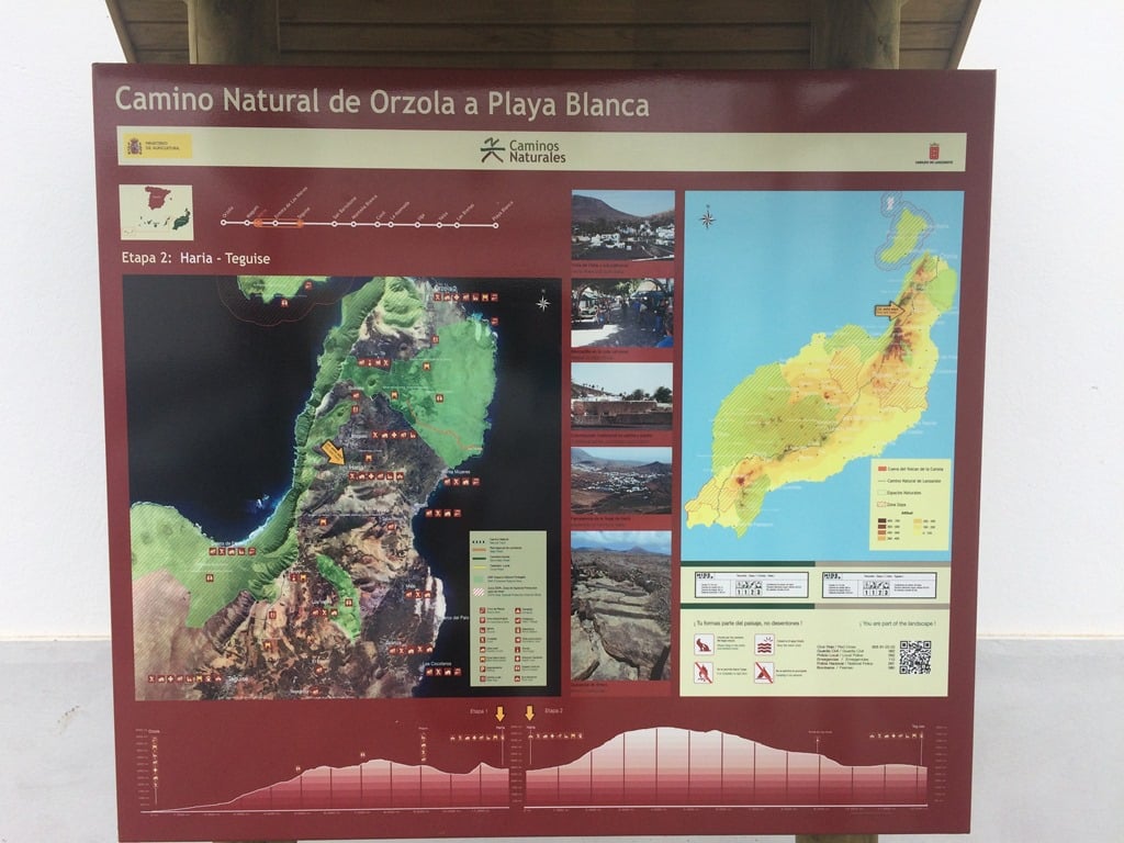 When you meet the road, we didn’t see any signs, head left on Calle Los LLanos, where we picked up a sign to cut along Calle Las Cruces and onto Calle La Cancela, at the first bend, the footpath is on the right with an information board to climb up the hill dividing Máguez from Haría.