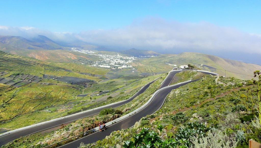 Continue on the road past César Manrique’s house and straight ahead onto the dirt track, bearing right when it splits to meet the Malpaso way road with the switchbacks up to the Mirador de Haría. We decided to stick to the footpath which zig zags across the tarmac road, if you are mountain biking it’s much easier to take the road at this point as we had to push our bikes up the hill in single file.