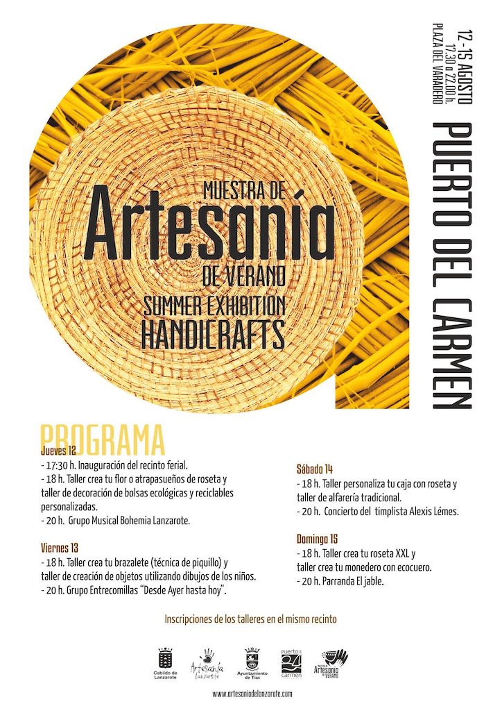 There will be a Crafts Fair in the Square of the Harbour in Puerto del Carmen between the 12th and 15th of August, from 17:30h to 22h, where not only there will showcase the island’s traditional crafts but you will be able to actually give them a go yourself with several workshops organised daily at 18h. More than 40 artisans will be showing off their work.