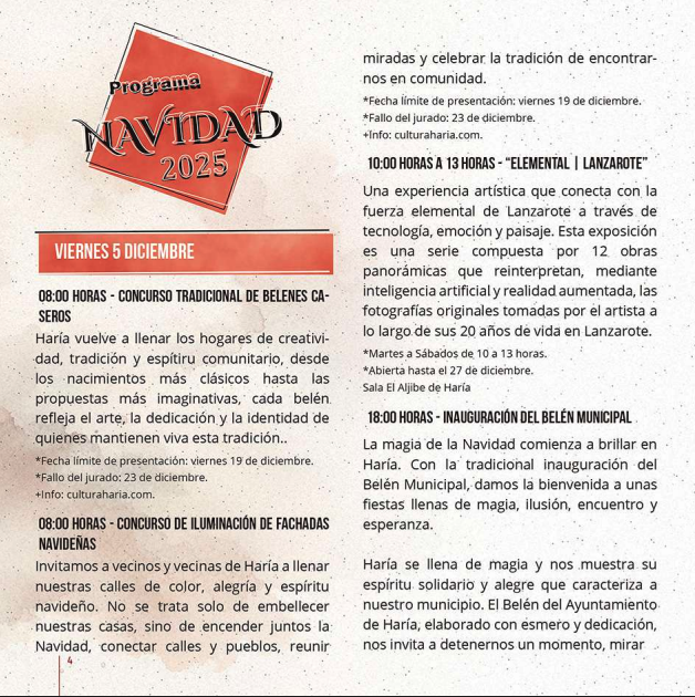 Here’s the festive event programme for the municipality of Haría in the North of Lanzarote.