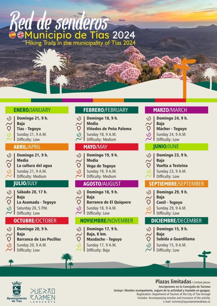 The Townhall of Tías has announced the free monthly Hiking Trails they have planned for this year in its municipality.