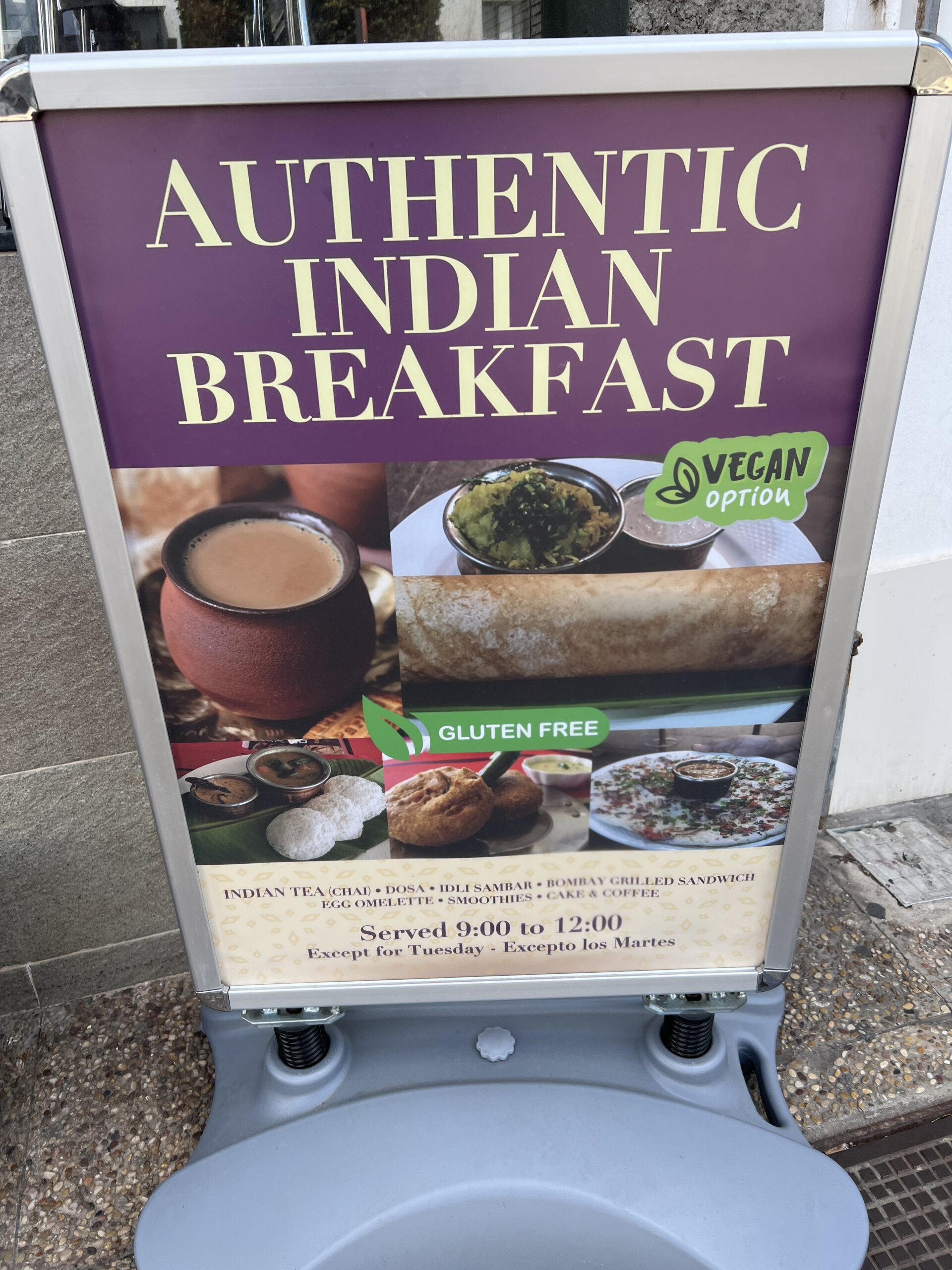 We’ve enjoyed an excellent meal at Indian Delights in Playa Blanca, but we were intrigued when they told us they were now offering an Indian breakfast, so we went along to try it out.