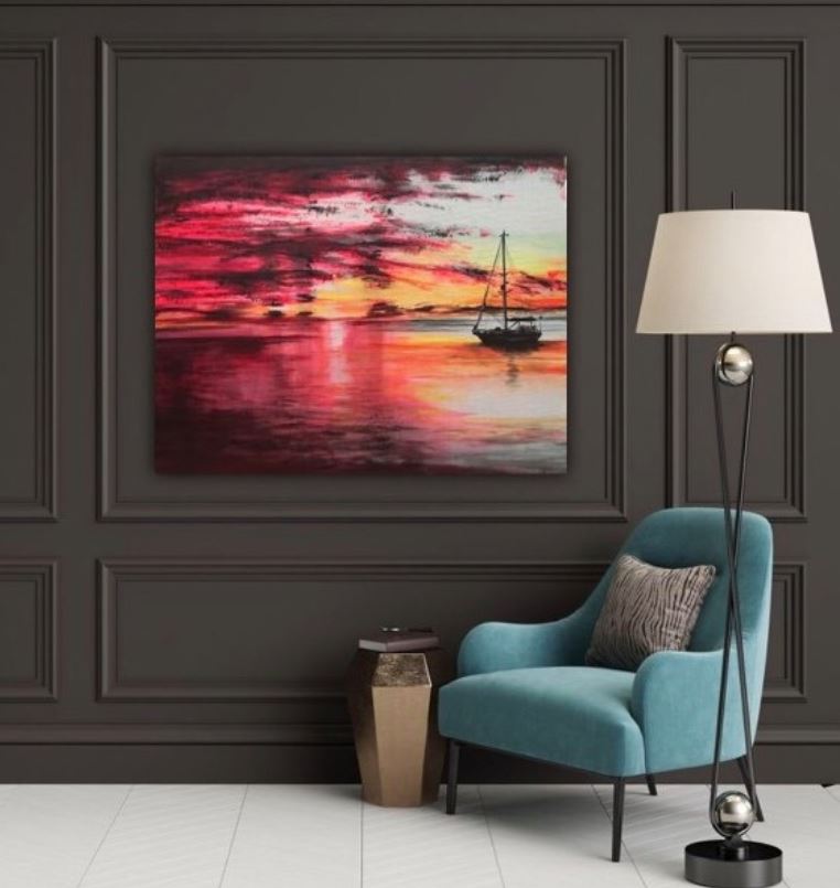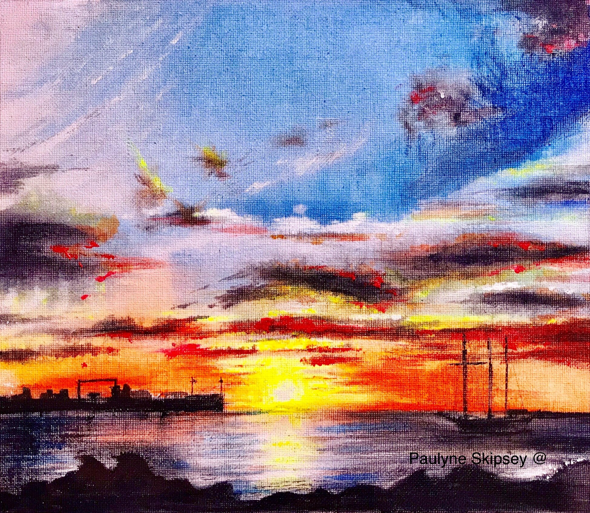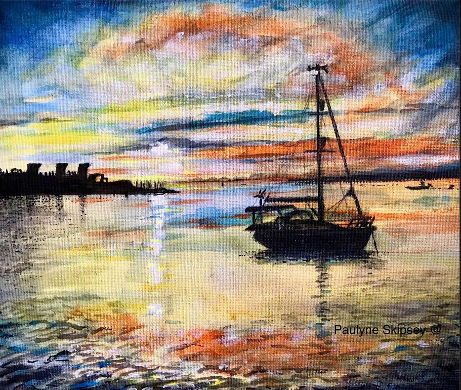 My idea was, that during the state of emergency, as people cannot get out of their homes, then I would paint God’s glorious creation of the wonderful sunrises and sunsets for them to see at home. I saw them around the marina, and then as restrictions were lifted the rest of the island. This collection is acrylic on canvas, all painted while on our boat ‘Saviour’ hence the Facebook page ‘Sailing Saviour art’