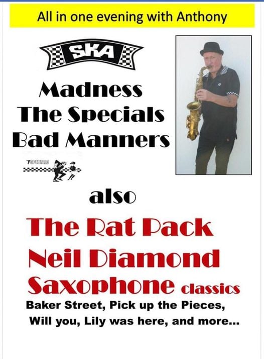 I’m learning to play the guitar at the moment but when I perform, I sing & play the sax. My repertoire goes from the Rat Pack, Neil Diamond, Jazz and Ska, obviously.