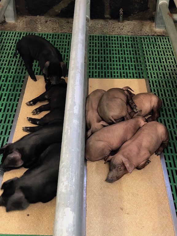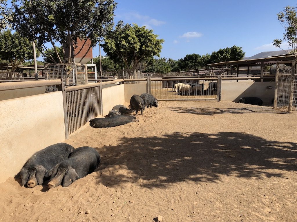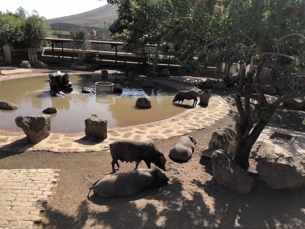 Our first stop was the maternity wing, where heavily pregnant pigs are taken in preparation for the birth of their piglets. They have two breeds at the farm including the Cochino Negro Canario (Canarian black pig) and Cerdas Ibéricas (Iberian black pigs). The farm has successfully interbred both breeds to produce a piglet with the best of both characteristics, known as the Cochino Finca de Uga.