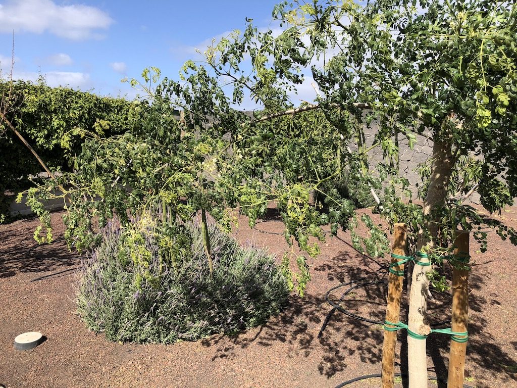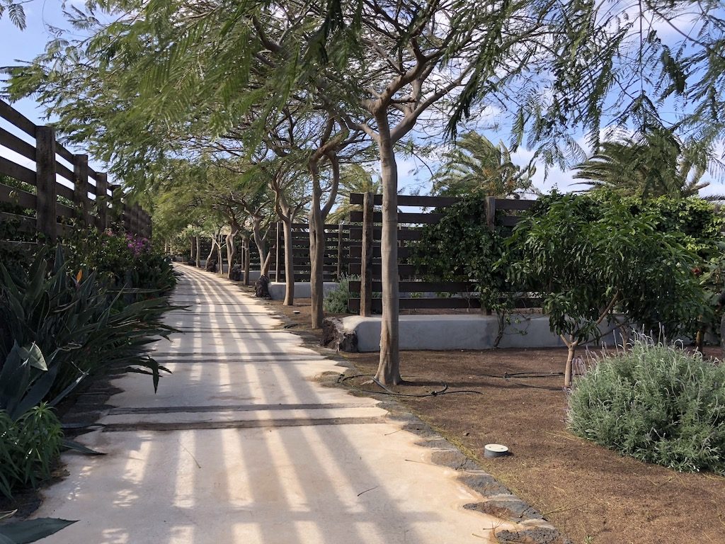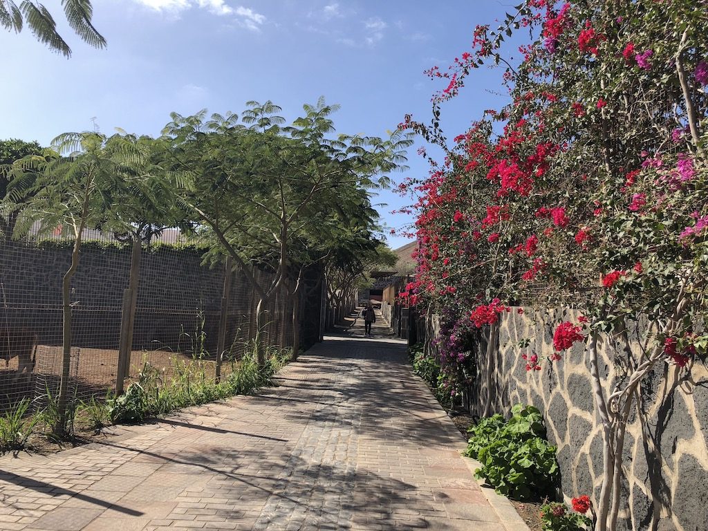 We follow the footpath past an abundance of fruit trees, sheltered from the wind by volcanic walls, wooden fencing and flamboya trees, which must look absolutely stunning when covered with their vibrant red blossom.