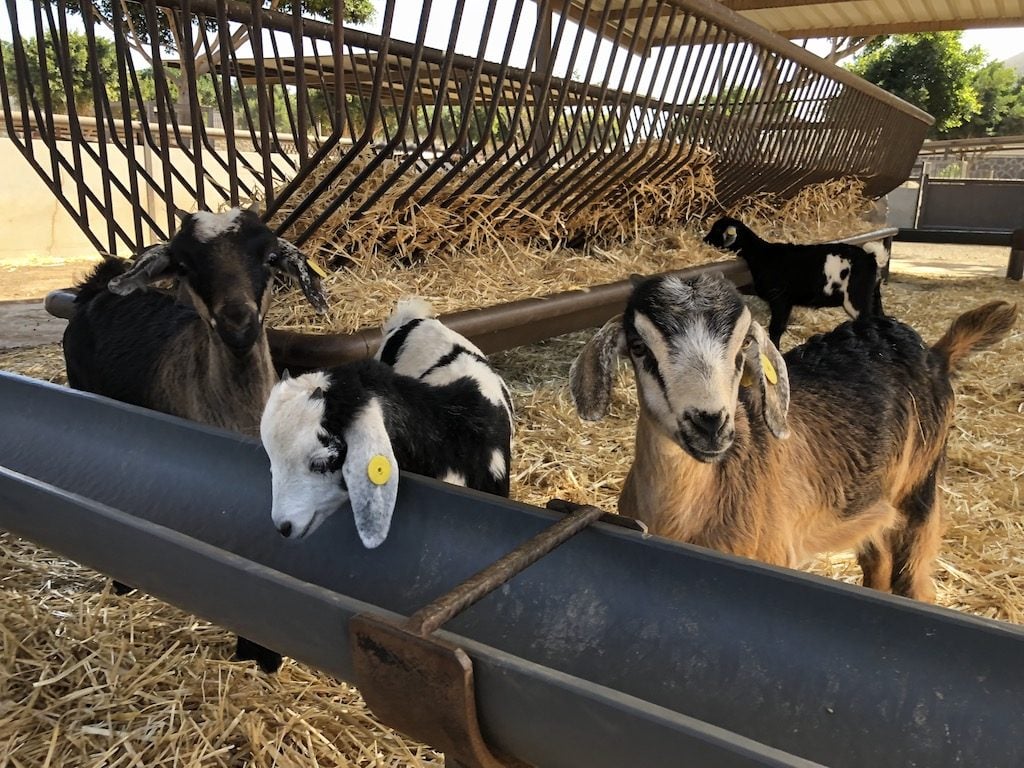 There was just time to see the milking shed and the adult goats on the upper level of the farm. On route we walked past the old stable block, the finca used to be a horse centre. The equines were relocated to Andalusia in the 90’s, where they can graze naturally. Opposite the stable is an aviary & duck pond, complete with a flock of pink flamingoes!