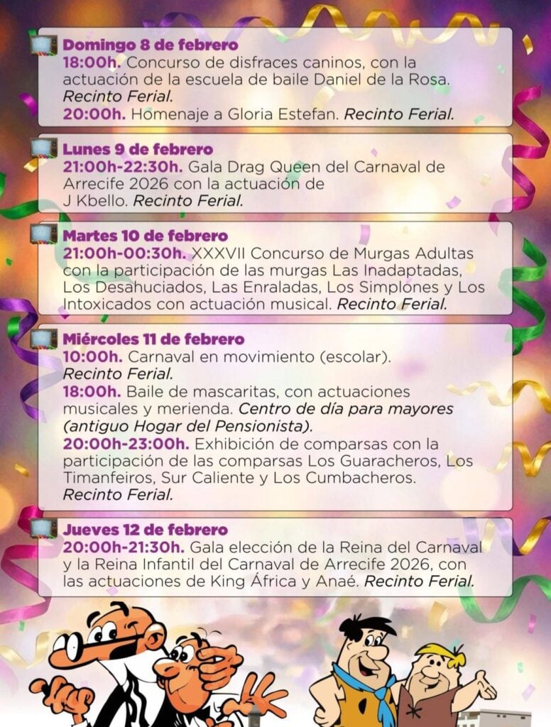 The full Arrecife Carnival programme from 6-18 February 2026 has been published. The theme is children’s television personalities from the decades 80’s to 90’s.