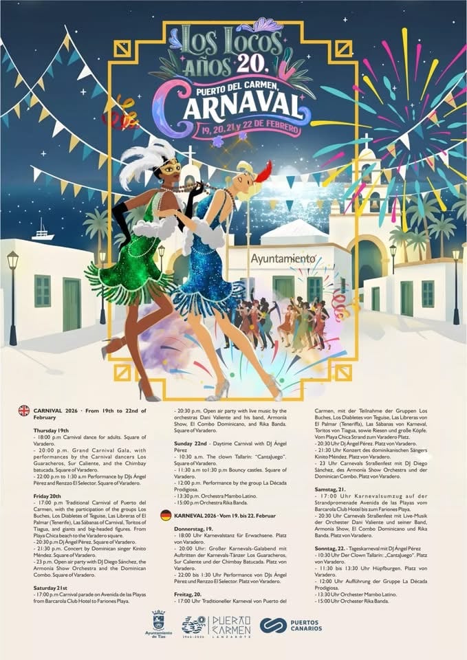 • Puerto del Carmen: 19 to 22 February 2026. Theme is “The Crazy 20’s.