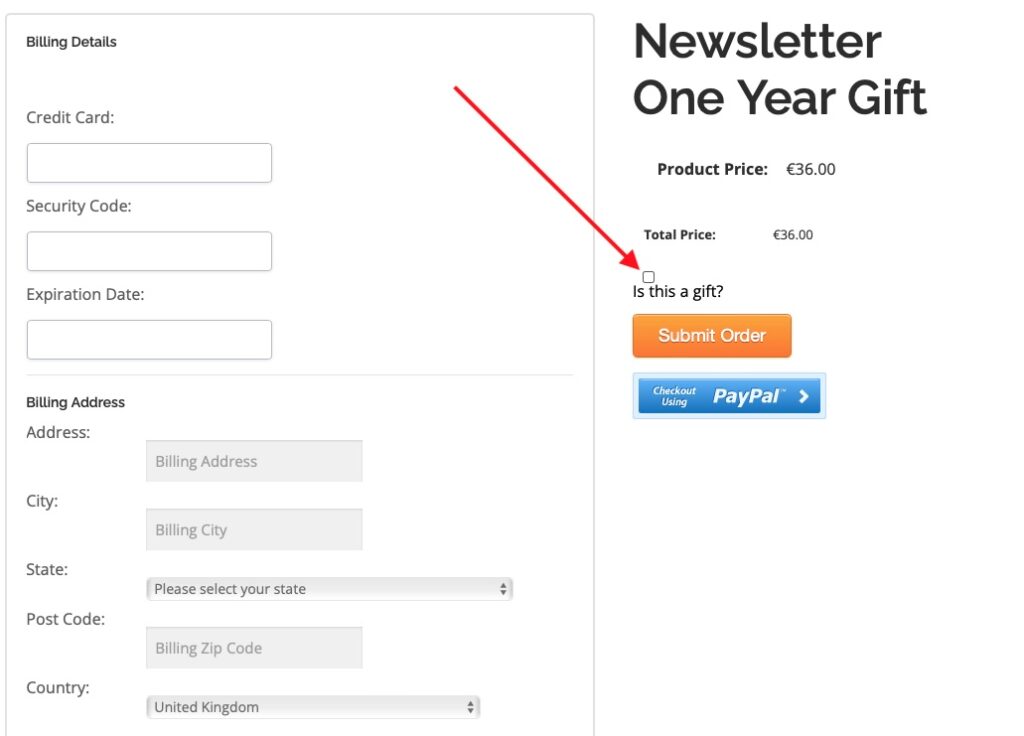 Put in your billing information and make sure you check the “Is this a gift?” box: