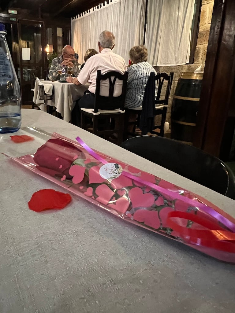 As it was Valentine’s night, I was given a rose to pass on the Julie when we arrived, the table was decorated with hearts and all the staff wore red ribbons.