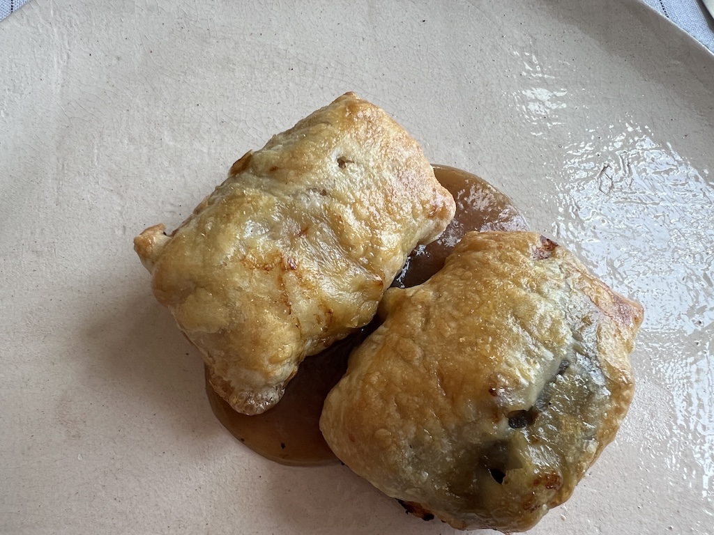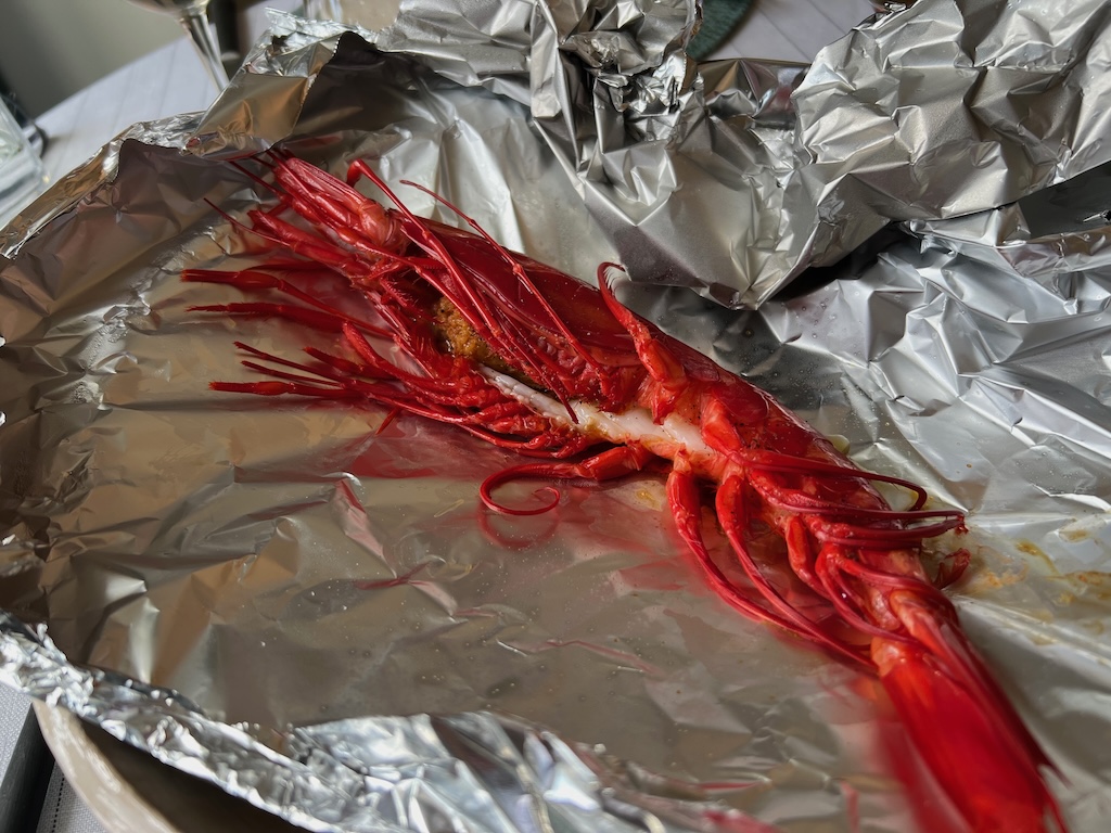 For our mains, Julie chose Quail Wellington – two small filo pasties stuffed with quail and vegetables and drizzled with a delicious gravy. I went with more fish, this time another delicacy, which was Carabinero with chorizo stuffing. It was amazing, served in a foil envelope and every mouthful was bursting with flavour and goodness.