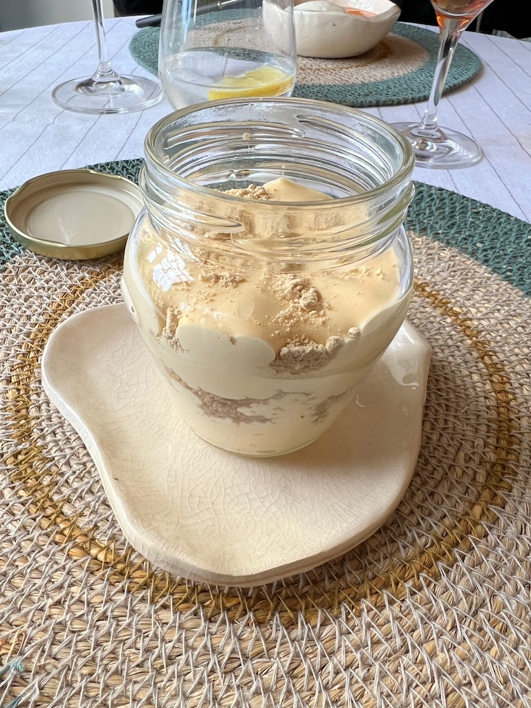 For dessert I chose, on the recommendation of another guest, the Huevos Mole, which was a kind of egg mousse, with crunchy gofio. It was a good choice – absolutely delicious and I’d love to know how to make it. Julie had Papaya with smoked cheese – a chunk of smoked cheese ice cream in a sea of pure’ed papaya, and that too was incredibly tasty and the perfect end to the meal.