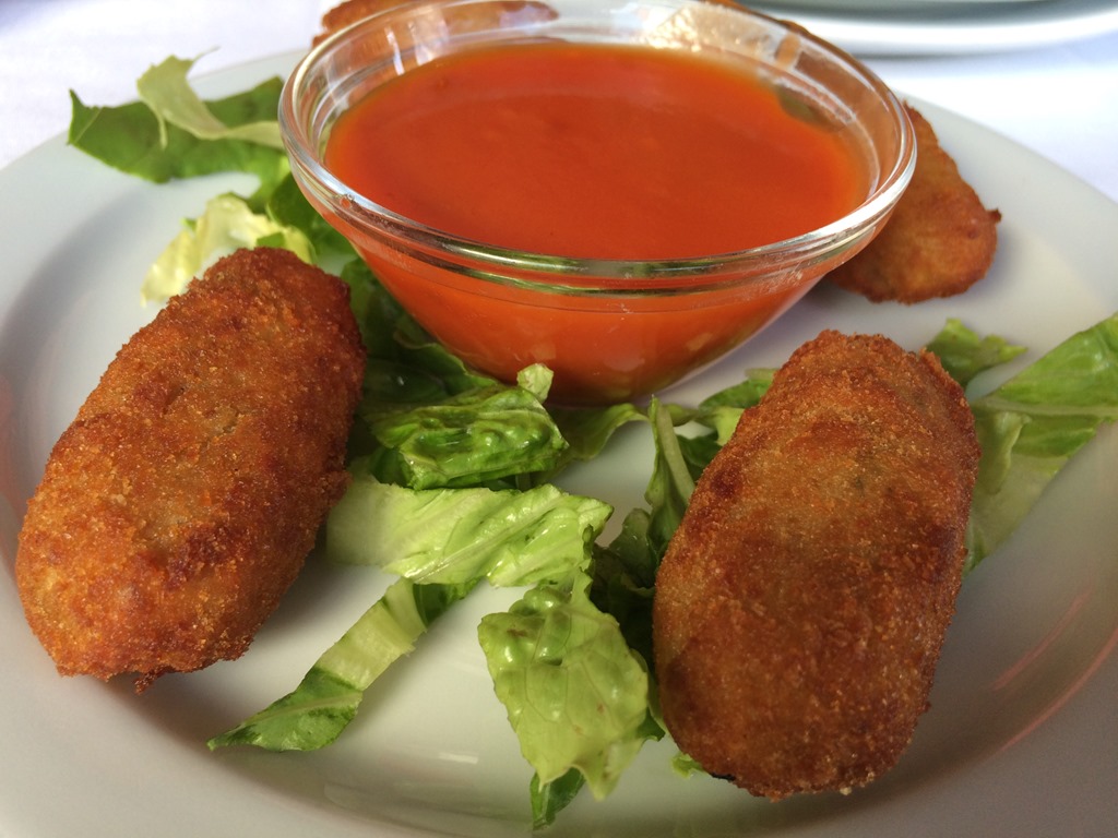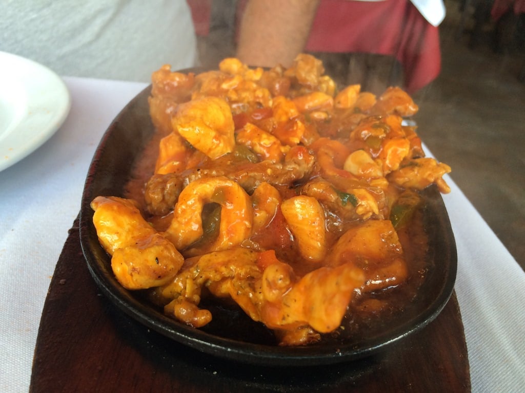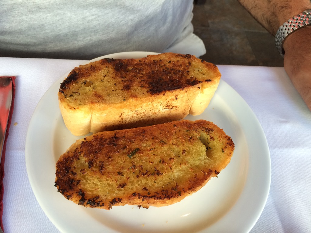 We both decided on fajitas for our main course, mine were chicken and Miguel’s were mixed. As I had a starter of croquettes, Miguel ordered garlic bread to keep me company. The service is fast and friendly, we enjoyed a bit of banter with our waitresses who were amazed at the number of people around for a Tuesday night, we explained that it was the Día de Niño at the fair, which was why lots of large Spanish families were walking past the front of the restaurant into the harbour area of the old town.