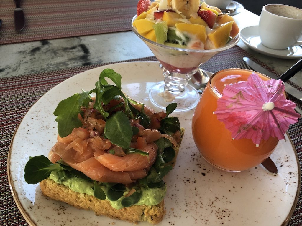 The food was fabulous – really good quality and beautifully presented. For example, the omelette was basically deconstructed and served in a small tower. All the fruit and veg used was super fresh and obviously peeled and prepared specifically for us. And the portions were large – there was more than enough food to take the place of both breakfast and lunch. In fact, we only needed a snack in the evening.