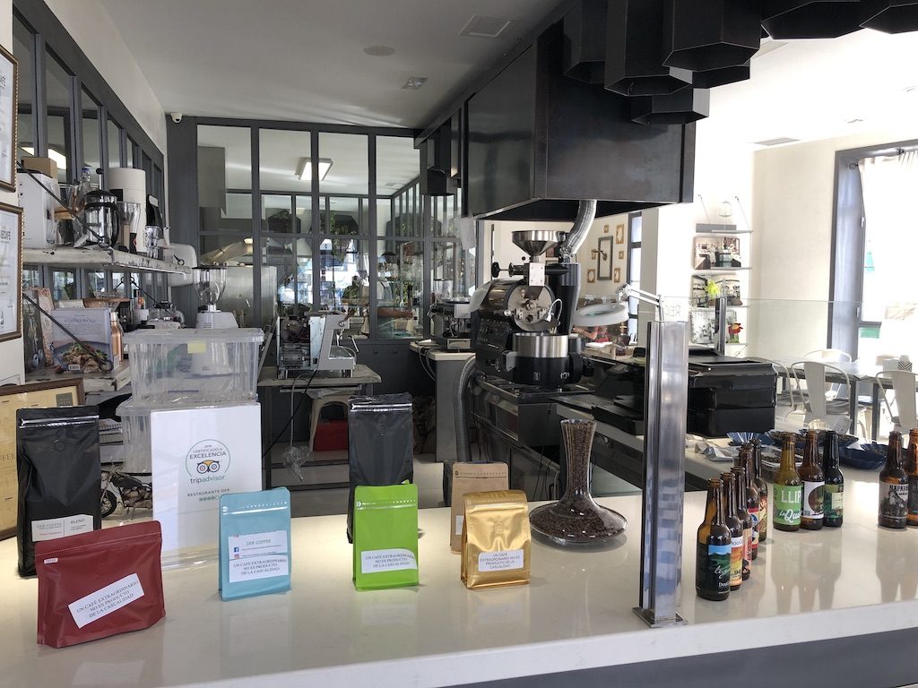 We love our Sunday brunches, so we decided to try the brunch at DER in Puerto del Carmen. They’re located opposite Lidl in Calle Juan Carlos 1. There are tables on the patio and more inside and the place has a very upmarket café vibe and it feels like it should be located in Madrid or Barcelona. There’s a simply huge coffee bean roaster taking centre stage in the main room and they certainly take their coffee seriously.