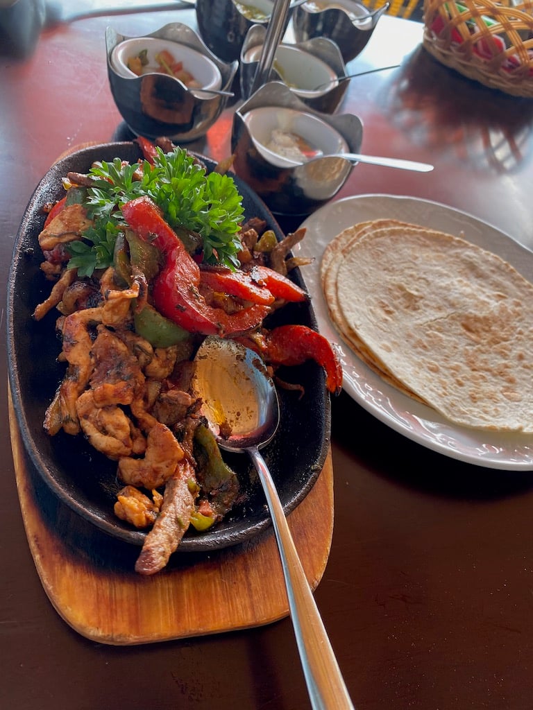 Our waiter for the day at Isla Bonita was Abdul, and he made us very welcome and took us through the menu del dia, as well as the a la carte options. I was hungry, and I’ve often found that menus del dia, while good value, offer small portions, so I decided to go for the normal menu and ordered Fajitas. Julie went for the menu, and I ended up with food envy! Not only were her portions “normal” sized, but the food was fabulous and it was incredible value for money at just €9.95 for three courses.