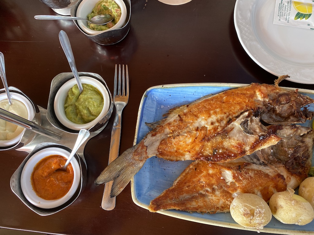 The location is great – one the Avenida Maritima, with fabulous views of the ocean and the comings and goings from the harbour. We chose a table in the shade but outside, and had the best of both worlds. It’s a small restaurant, but comfortable.