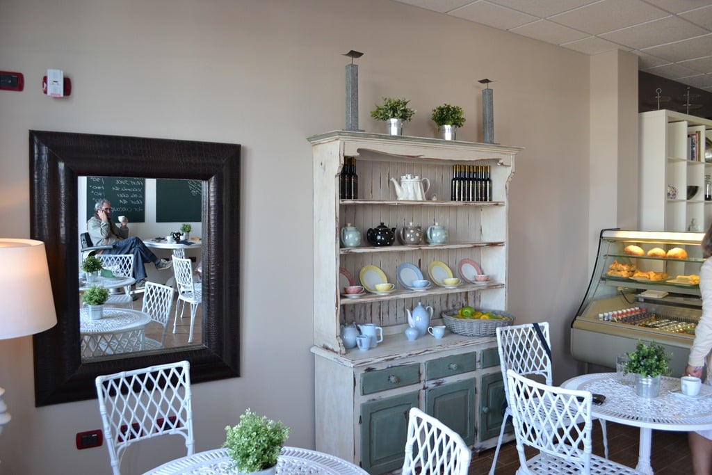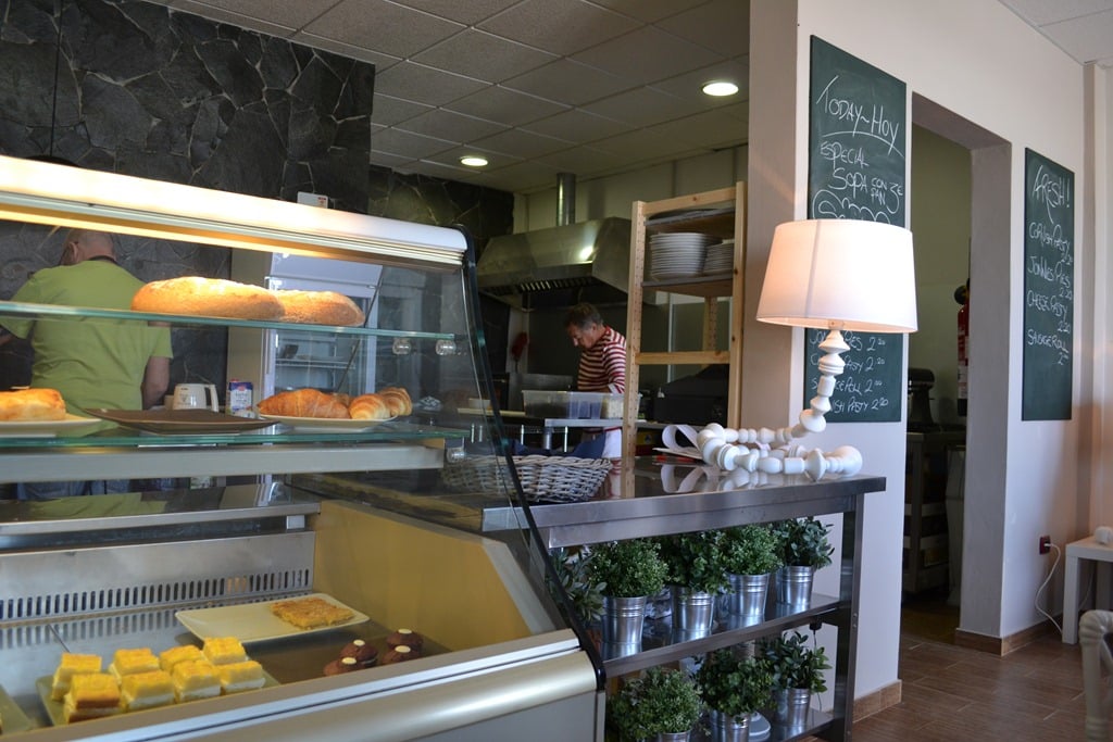 We sat down at the only empty table inside and ordered a slice of bakewell tart, red velvet cake, cafe con leche and hot chocolate. The place was buzzing with a mixture of clients including English, Spanish and German. Our drinks and cakes arrived, I was delighted with my hot chocolate which comprised of a hot glass of milk and two dishes of buttons, one dark the other milk. Jonnie explained that I add the buttons to the hot milk to make my own hot chocolate according to my taste and of course you simply eat any left in the dishes!