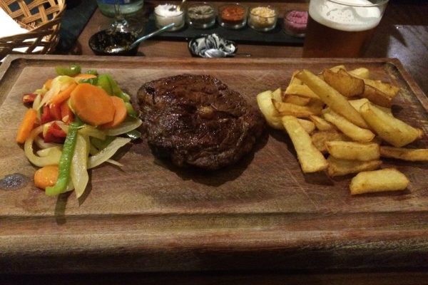 I ordered Gazpacho from the specials board as a starter, which was disappointing, this cold soup had flavour but with a watery consistency and only croutons to add. Miguel ordered the morcilla, and thoroughly enjoyed his black pudding which was surprisingly served with chips. For the main course I went with the suggestion of the Iberian Secret which is meat cut from between the shoulder blade and loin of the prized Iberian pigs. It was fabulous, cooked to perfection and bursting with flavour, served with delicious chunky chips and a mediocre medley of vegetables. Miguel ordered the Uruguayan sirloin steak, whilst everyone else opted for the fillet steak, having tasted both, Miguel declared the fillet very tender, but not as tasty as his sirloin.