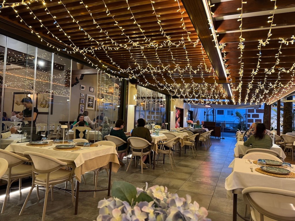 The restaurant itself isn’t large, but it features a fabulous covered terrace at the rear, which looks out onto The Fariones sports centre and the swimming pool there. We hadn’t booked, but they were able to find a table for us and there were plenty of friendly staff on hand to give advice and take our order. La Casa de Pamigiano seems to have one of the highest staff to customer ratios we’ve come across on the island.
