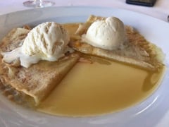 For dessert, we swapped menus, Miguel had the chocolate profiteroles from mine and I picked the crepe Suzette from his.