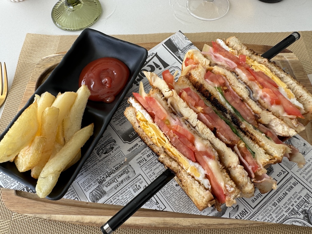 The lobster roll was spectacular – served on brioche bread, with the lobster and shrimp chopped and served in a delicious mayonnaise, with a side of avocado and tomato. The club sandwich consisted of chicken breast, a fried egg, tomatoes and bacon. It was fine and a very healthy portion, but I felt it was a little lacking in flavour and seasoning. It was served with a small portion of fries. The truffle parmesan fries we ordered as a side were amazing, perhaps twice or three times cooked, and liberally dusted with truffles and proper Parmesan.